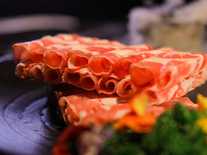 脂肪組織色澤乳白、肌肉組織亮紅、肌內脂肪沉積較好、肉質鮮嫩、氣味純正